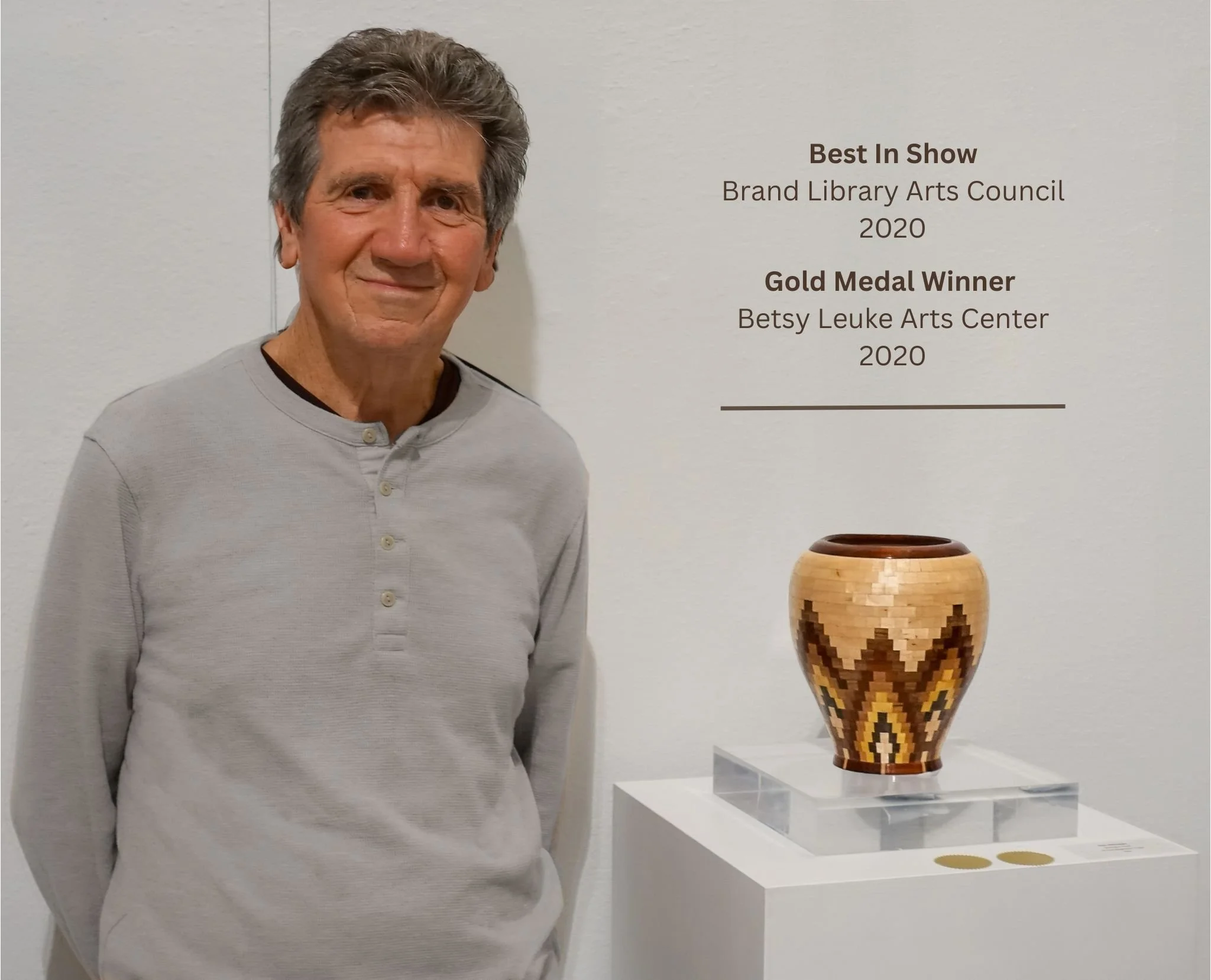 Starting in the 1970’s Sam built a classical guitar and through the 80’s and 90’s he turned to custom furniture. Currently, his most recent endeavors are focused on segmented bowls and creations. He has an intuitive flair for the essence of woods: their textures, colors, and nature. Sam has won numerous awards for his bowls, most notably a 2020 Gold Medal from the Betsy Leuke Arts Center in Burbank California, and Best In Show awarded him from the prestigious Brand Library Arts Council. He resides in Studio City, CA.